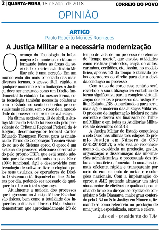 "O avanço da Tecnologia da Informação e Comunicação está transformando todas as áreas da sociedade e o sistema Judiciário Militar não é uma exceção. Em um mundo cada dia mais conectado das mais diversas formas, o acesso fácil, rápido, a qualquer momento e sem limitações à Justiça deve ser encarado como um Direito fundamental do cidadão. Da mesma forma, esta tecnologia também necessita colaborar com o Estado no sentido de ritos processuais mais céleres, sem o risco de amorosidade do processo comprometer a Justiça.