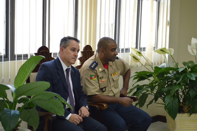 Na tarde desta terça-feira (23 de outubro), o Comandante Geral do Corpo de Bombeiros (CBM/RS), Coronel Cleber Valinodo Pereira, visitou o Tribunal de Justiça Militar do Estado. Além dele, o Corregedor Geral do CBM/RS, Tenente Coronel Carlos Alberto da Silva Souto também esteve presente. A visita institucional teve a recepção do presidente do Tribunal de Justiça Militar do Estado, juiz civil Fernando Guerreiro de Lemos. Foi a primeira visita de um representante dos Bombeiros desde a desvinculação com a Brigada Militar.
