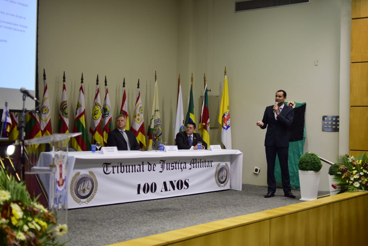 Após, houve uma conferência de encerramento com o Presidente da Associação dos Magistrados do Brasil – AMB, o Juiz de Direito Jayme de Oliveira, com o tema “AMB e a Justiça Militar”.