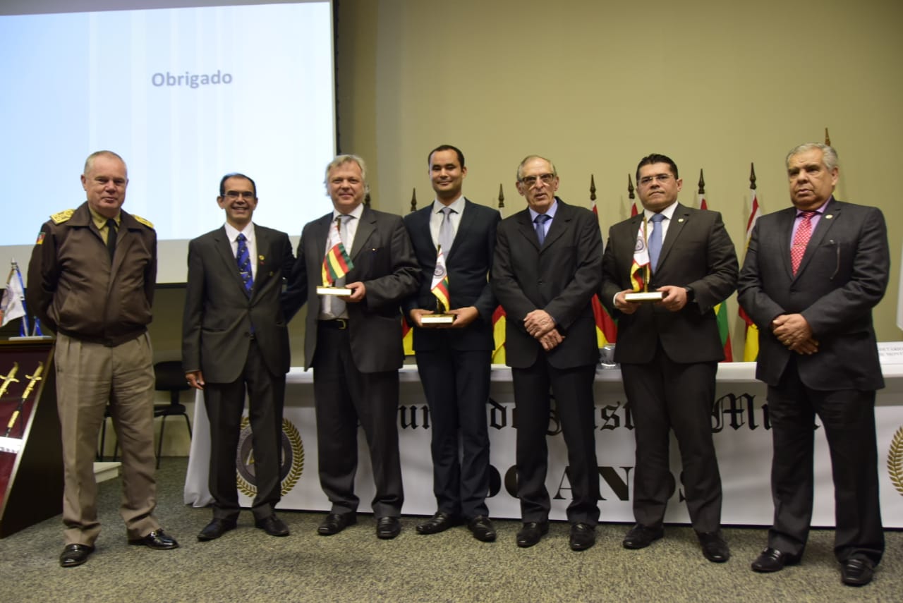 Ao final do segundo painel, o Juiz De Direito Paulo Tadeu Rodrigues Rosa, da Justiça Militar do Estado do Minas Gerais, o Desembargador Getúlio Corrêa, Presidente da Associação dos Magistrados das Justiças Militares Estaduais e o Juiz Militar Antonio Carlos Maciel Rodrigues, Vice-Presidente do TJM/RS, conferiram aos painelistas e ao mediador uma homenagem.