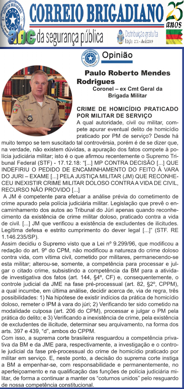Correio Brigadiano: Artigo - Crime de homicídio praticado por Policial Militar de serviço