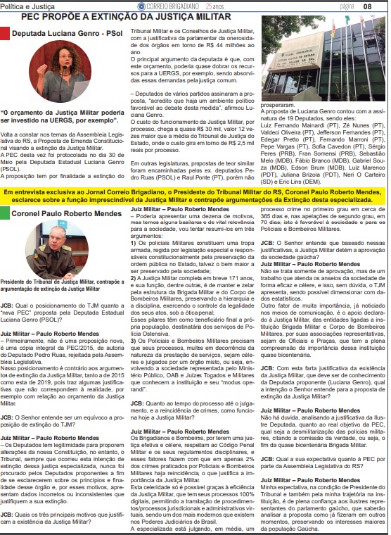 Correio Brigadiano - PEC propõe a extinção da JME - ponto e contraponto