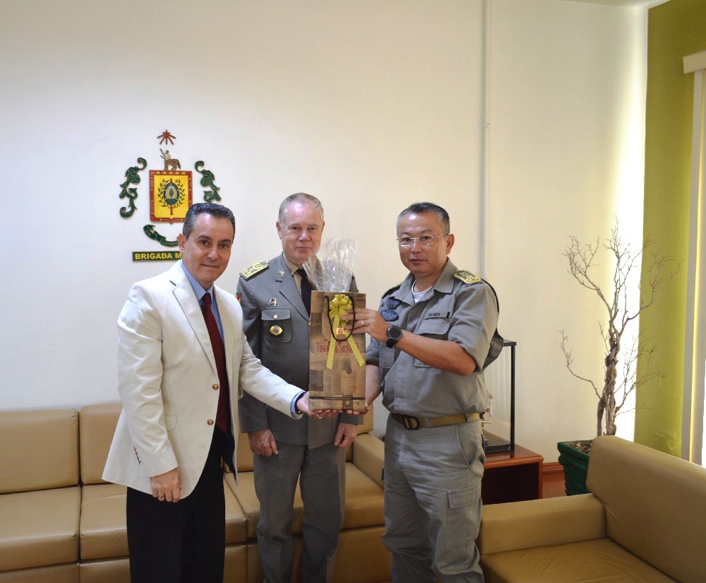 Na manhã dessa segunda-feira (17/12), o Presidente do Tribunal de Justiça Militar do Rio Grande do Sul, Juiz Militar Cel. Paulo Roberto Mendes Rodrigues, acompanhado do Corregedor-Geral da JMERS, Juiz Civil Amilcar Fagundes Freitas Macedo, apresentaram os cumprimentos de final do ano ao Comandante-Geral da Brigada Militar, Cel. Mario Yukio Ikeda, no gabinete do Comando da Corporação.