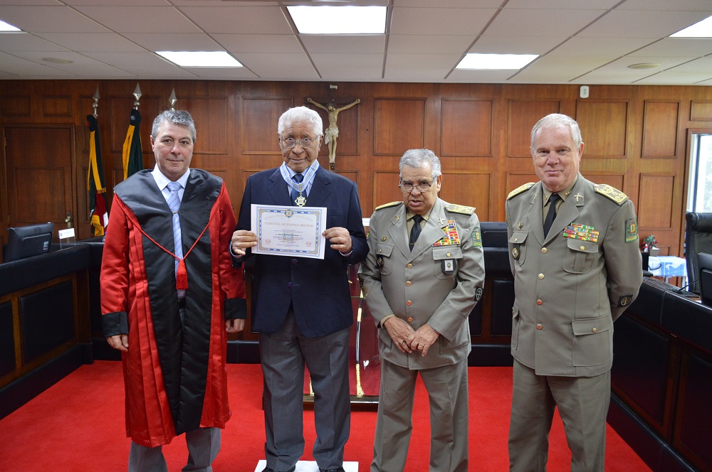 Ato Contínuo, o Ex-Governador do Estado do Rio Grande do Sul, Alceu de Deus Collares, também foi convidado a dirigir-se ao local de destaque do evento, para receber a comenda alusiva ao Centenário do TJM, tendo sido entregue pelo Vice-Presidente do TJM e Diretor da EJM, Juiz Militar Antonio Carlos Maciel Rodrigues, acompanhado pelo Juiz Civil Fernando Guerreiro de Lemos.