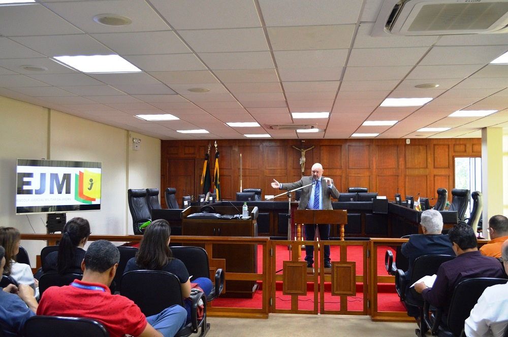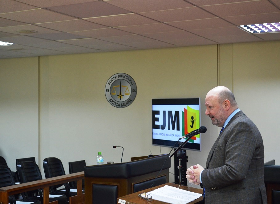 De início, o Diretor da EJM, Juiz Militar Antonio Carlos Maciel Rodrigues, registrou agradecimentos ao palestrante, enaltecendo a presença do Dr. Antonio Augusto Mayer dos Santos, bem como dos serventuários e participantes no evento promovido.