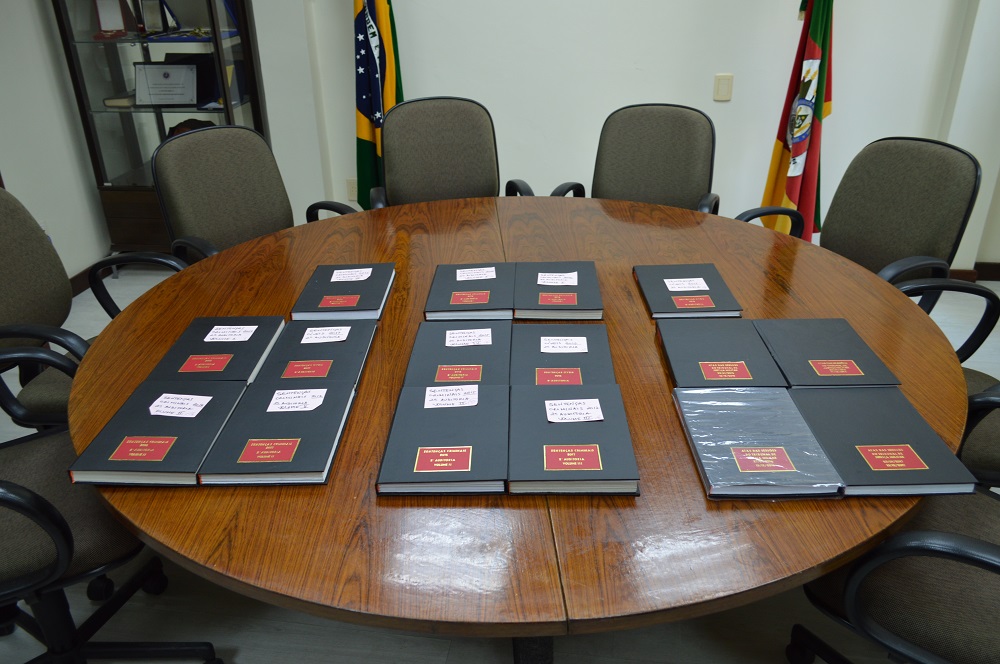 Na tarde dessa segunda-feira (28 de janeiro), a Justiça Militar do Estado do Rio Grande do Sul recebeu da empresa contratada as encadernações das Atas das Sessões do TJM e das sentenças prolatadas pela 2ª Auditoria Militar de Porto Alegre, datadas de 2014 à 2017.