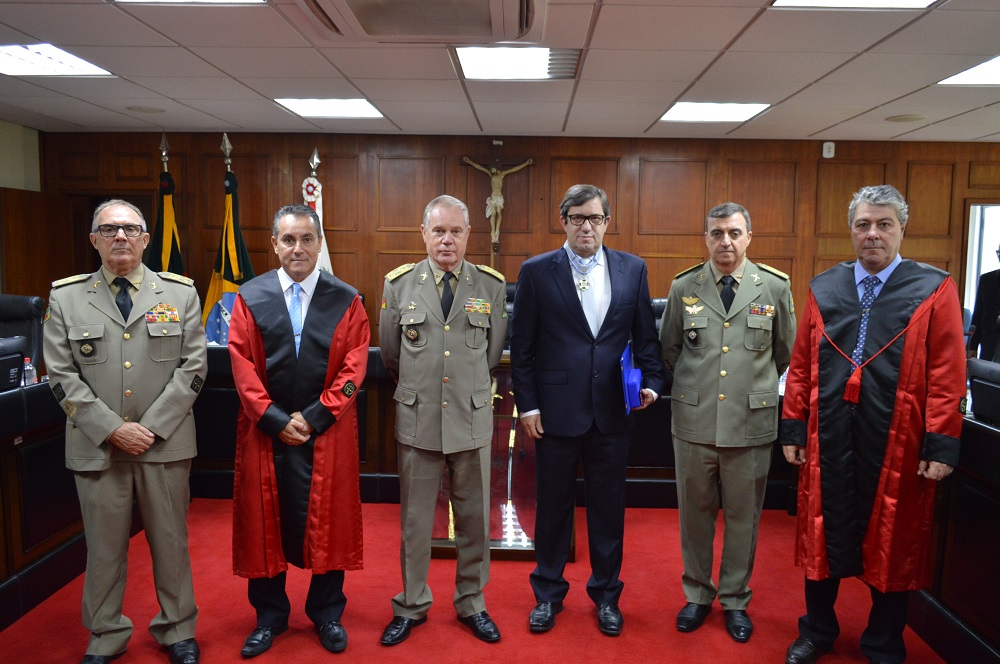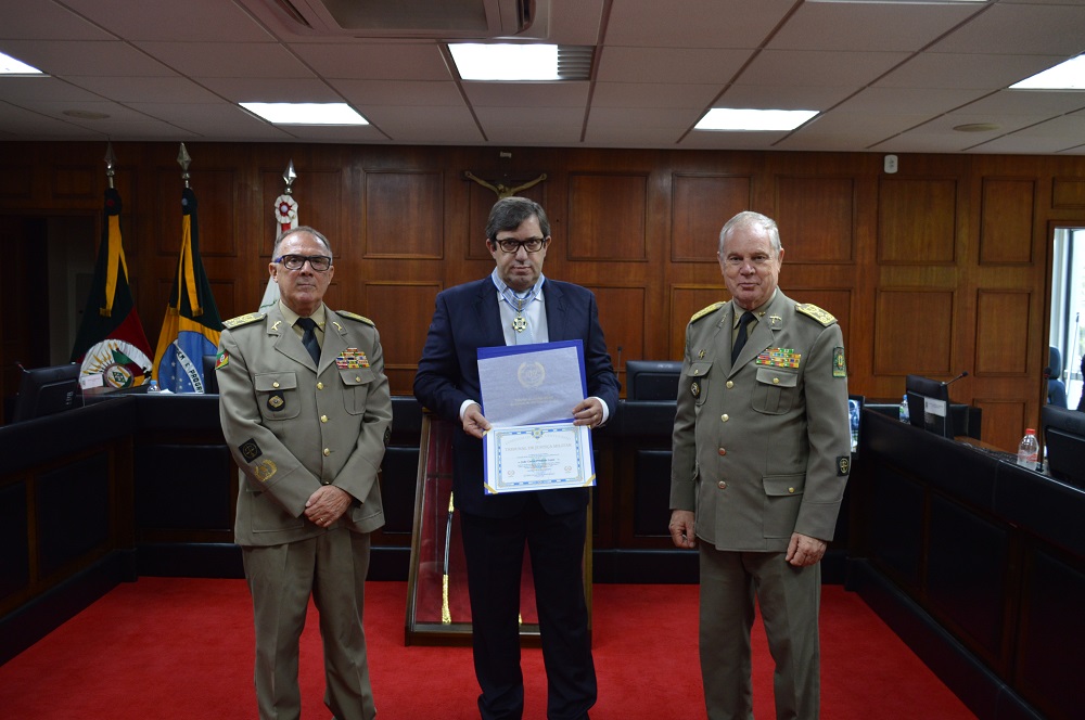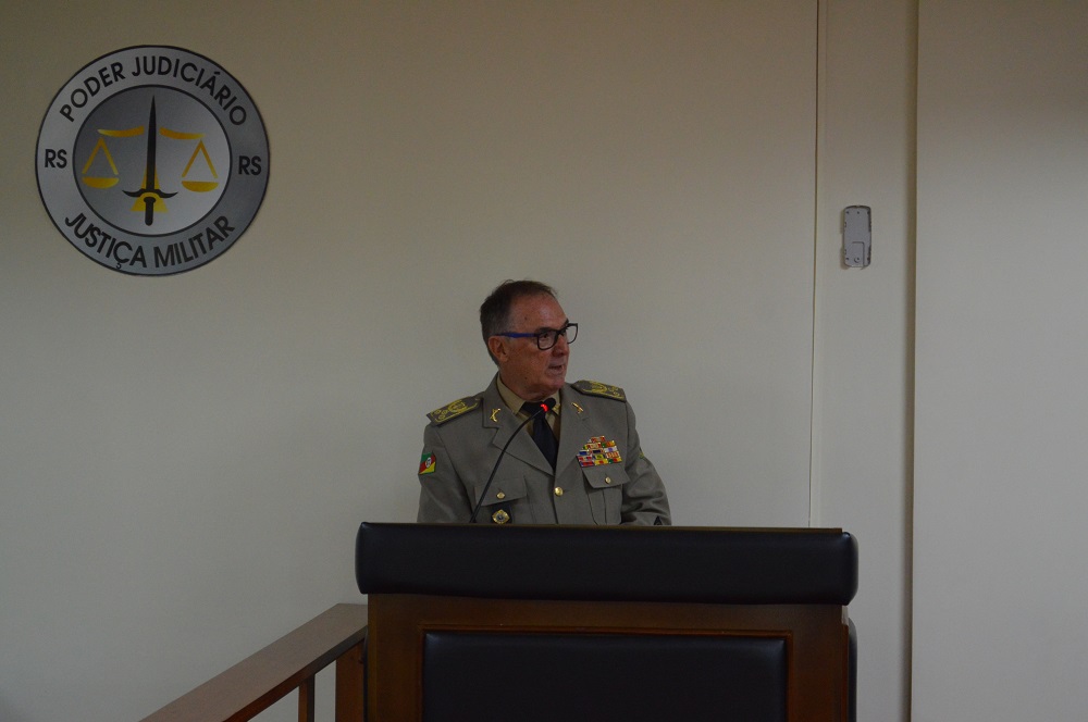 De imediato, o Presidente do TJMRS, juntamente com o Juiz Militar Sergio Antonio Berni de Brum realizaram a entrega da Comenda da Justiça Militar ao Cel. RR. João Carlos Trindade Lopes, o qual proferiu discurso, ressaltando a importância histórica da Justiça Militar com a Brigada Militar.