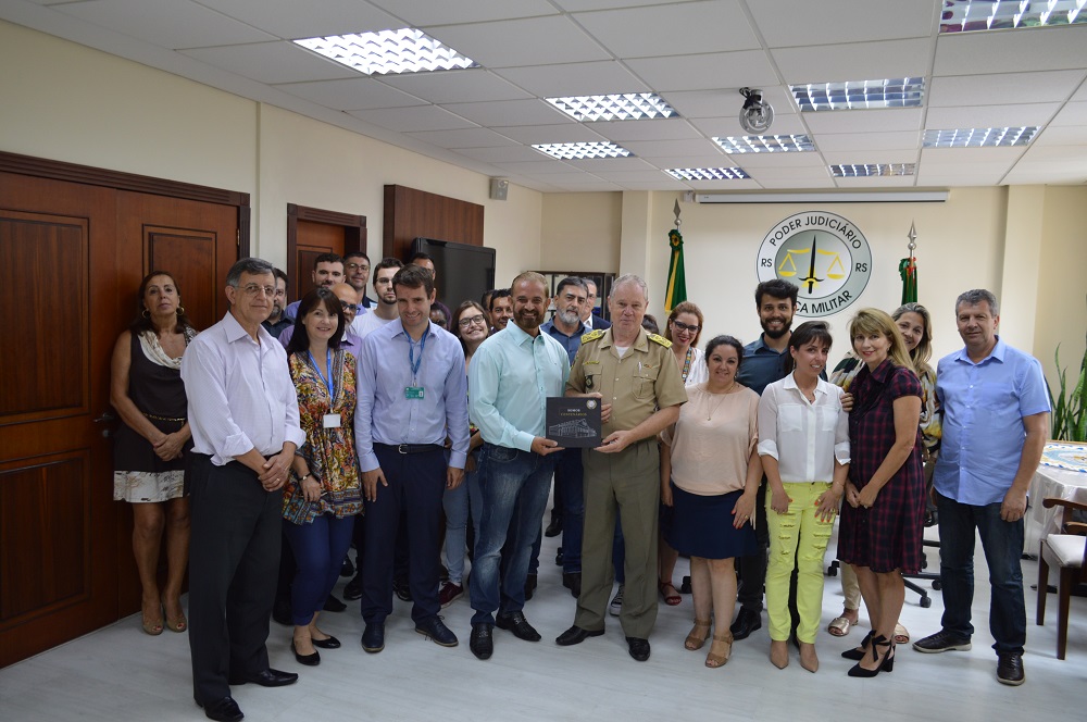 Na manhã dessa quarta-feira (23 de janeiro), a Justiça Militar do Estado do Rio Grande do Sul, representada pelo Presidente do TJM, Juiz Militar Paulo Roberto Mendes Rodrigues, homenageou o Defensor Público Jubilado José Francisco Ferreira de Andrade, com a entrega do Livro Institucional do Centenário do Tribunal Militar.