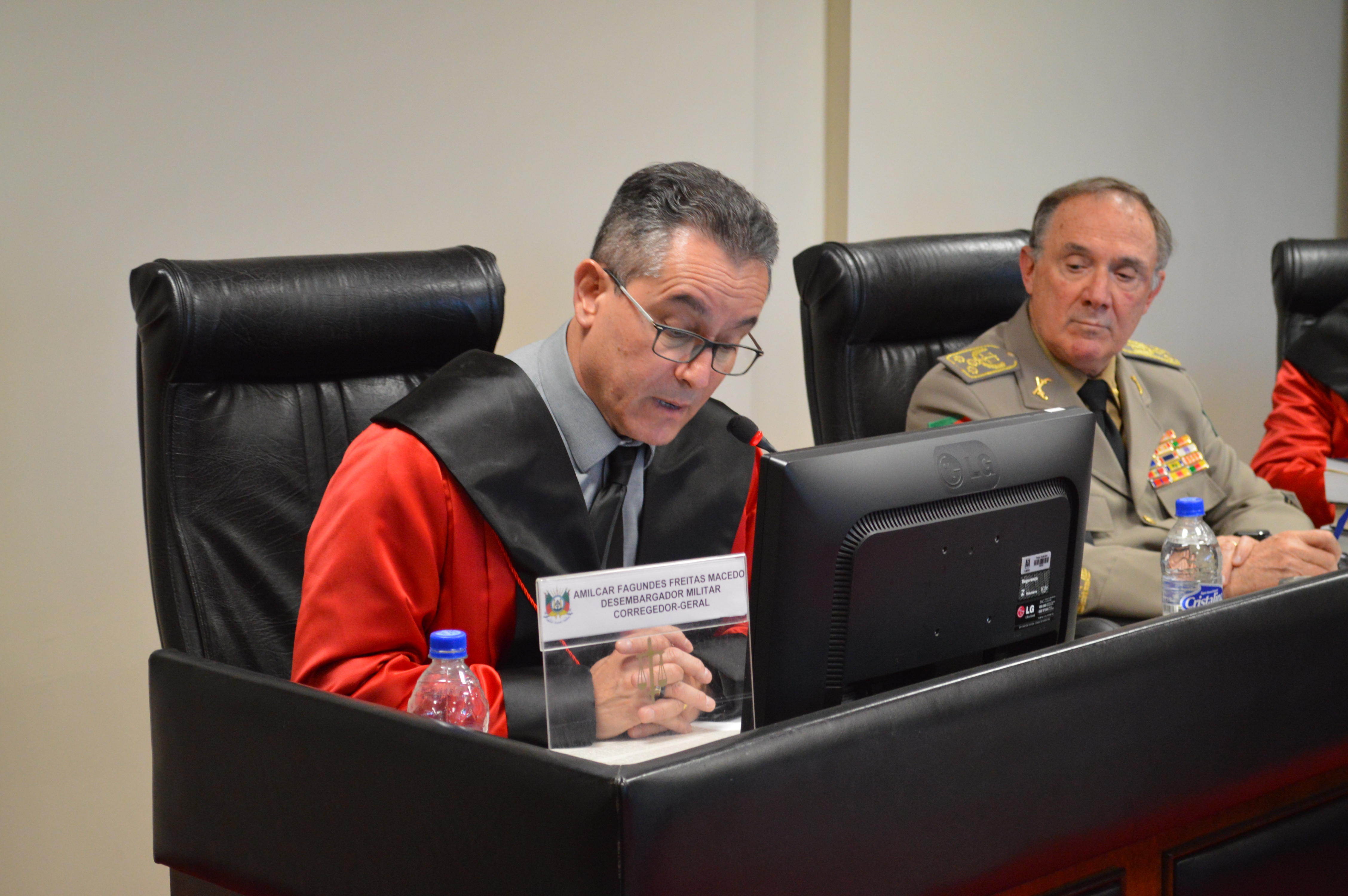 Dando continuidade, proferiu discurso o Corregedor-Geral da JMERS, Desembargador Militar Amilcar Fagundes Freitas Macedo, que realizou as saudações ao homenageado em nome da Justiça Militar.