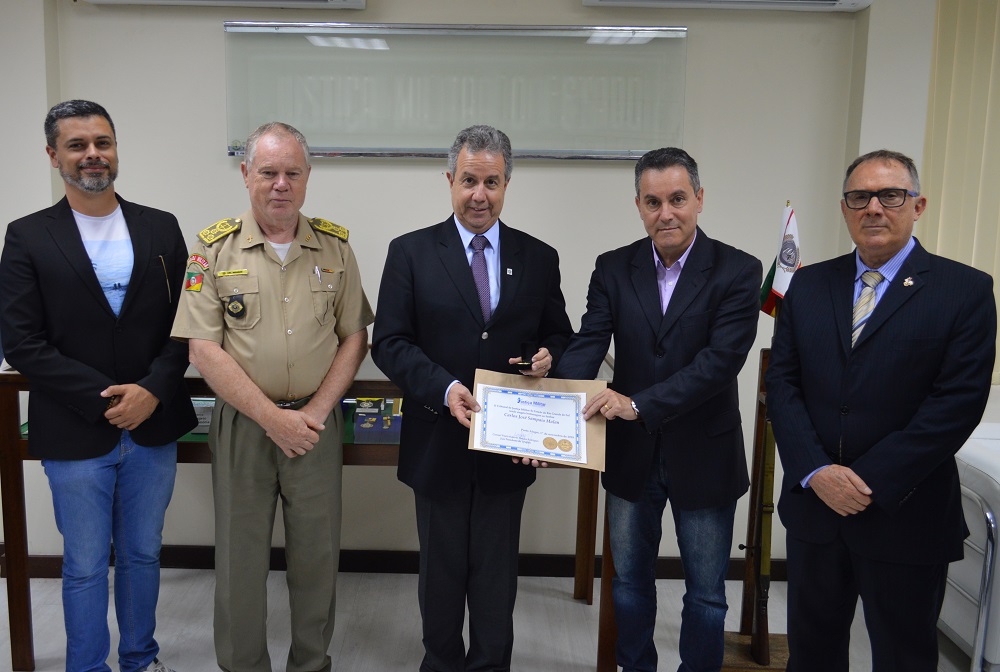 A homenagem se deu através de um discurso do Sr. Presidente, seguido da entrega da Moeda Institucional do Centenário do Tribunal Militar, realizada pelo Corregedor-Geral da JME/RS, Amilcar Fagundes Freitas Macedo, e por um certificado alusivo ao evento, entregue pelo Juiz Militar Sergio Antonio Berni de Brum.
