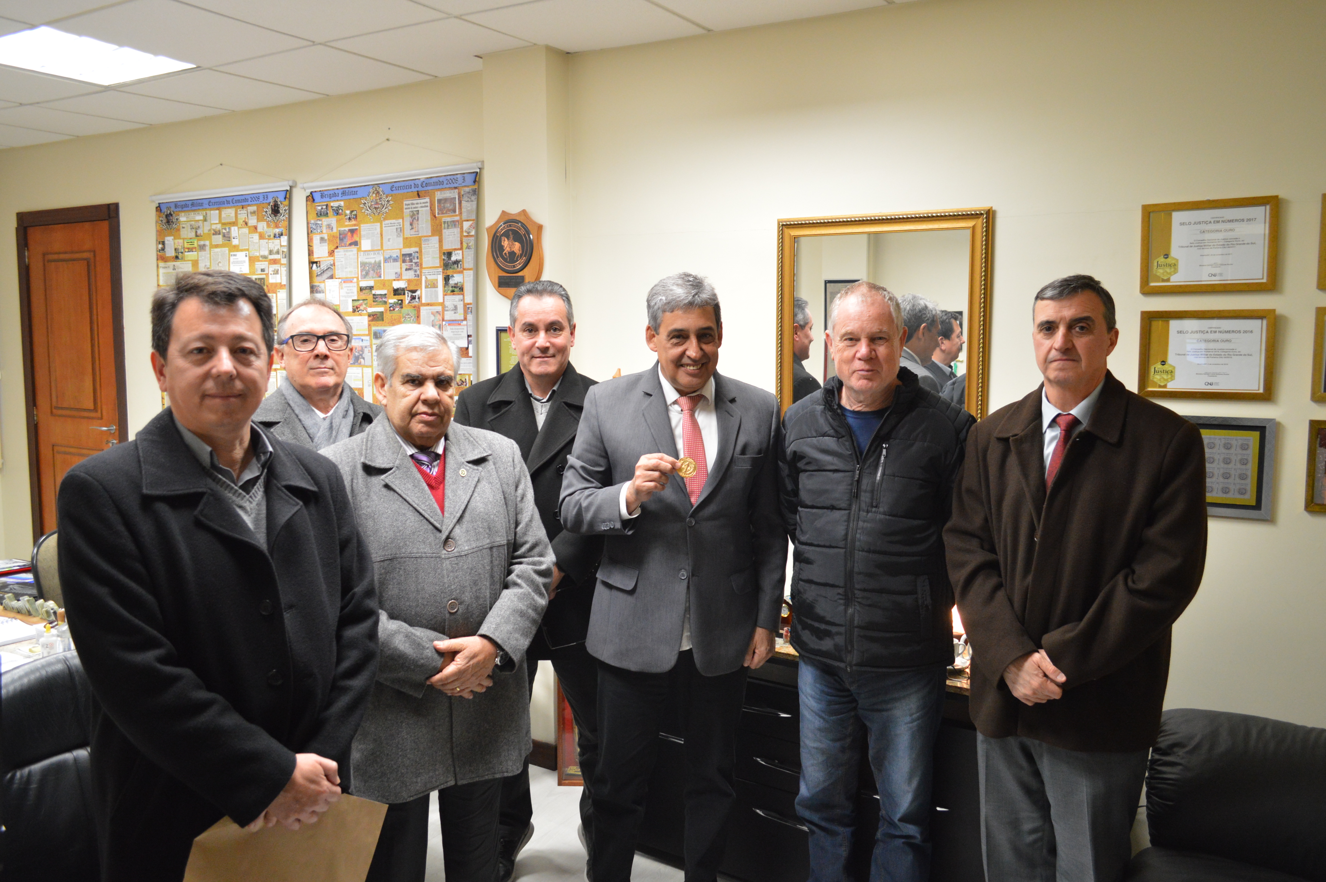 Os Desembargadores Militares, Paulo Roberto Mendes Rodrigues, Presidente do TJM; Antonio Carlos Maciel Rodrigues, Vice-Presidente do TJM; Amilcar Fagundes Freitas Macedo, Corregedor-Geral da JME; Sergio Antonio Berni de Brum e Fábio Duarte Fernandes, recepcionaram o Deputado Estadual e sua comitiva.
