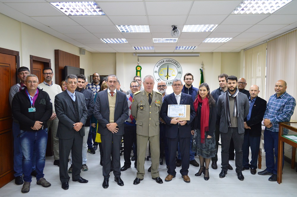 Na tarde dessa quarta-feira (08 de agosto), o juiz presidente do Tribunal de Justiça Militar do Rio Grande do Sul, Cel. Paulo Roberto Mendes Rodrigues, homenageou o juiz federal Sérgio Tejada Garcia, em razão do apoio prestado à esta Justiça Especializada com a instauração do sistema eproc.