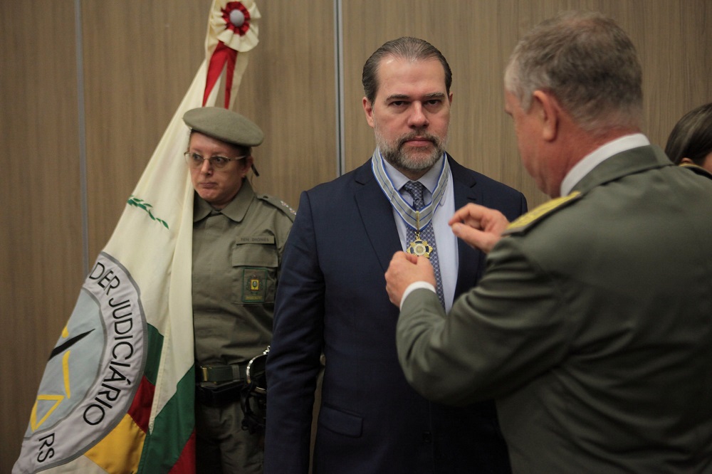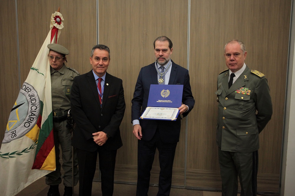 Na manhã dessa terça-feira (04 de dezembro), a Justiça Militar do Estado do Rio Grande do Sul (JMERS) outorgou a Comenda do Centenário do Tribunal de Justiça Militar ao Ministro Dias Toffoli, Presidente do Supremo Tribunal Federal e do Conselho Nacional de Justiça - CNJ.