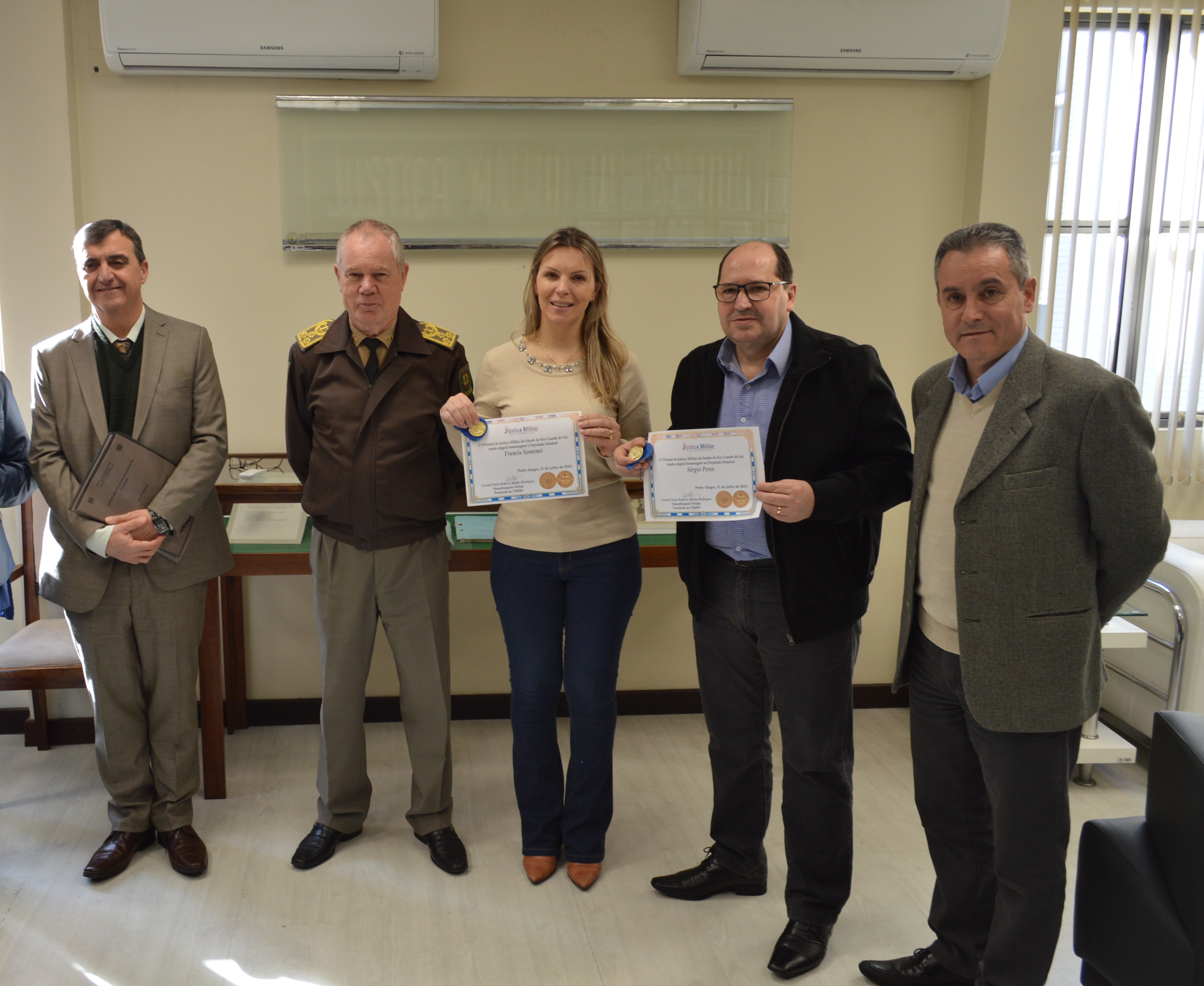 Na tarde dessa quinta-feira (11 de julho), a Justiça Militar do Estado do Rio Grande do Sul homenageou os Deputados Estaduais Sérgio Peres e Fran Somensi, na Sala dos Magistrados do TJM.
