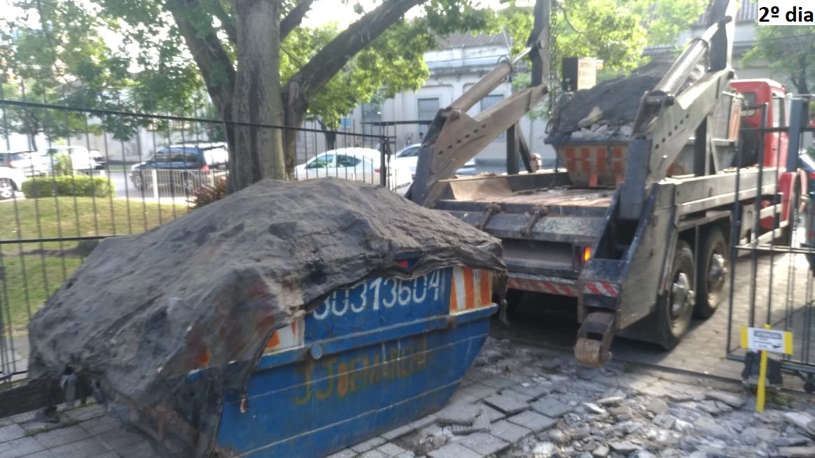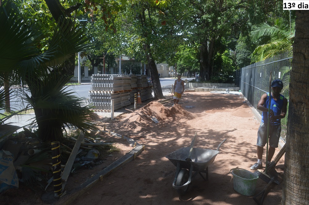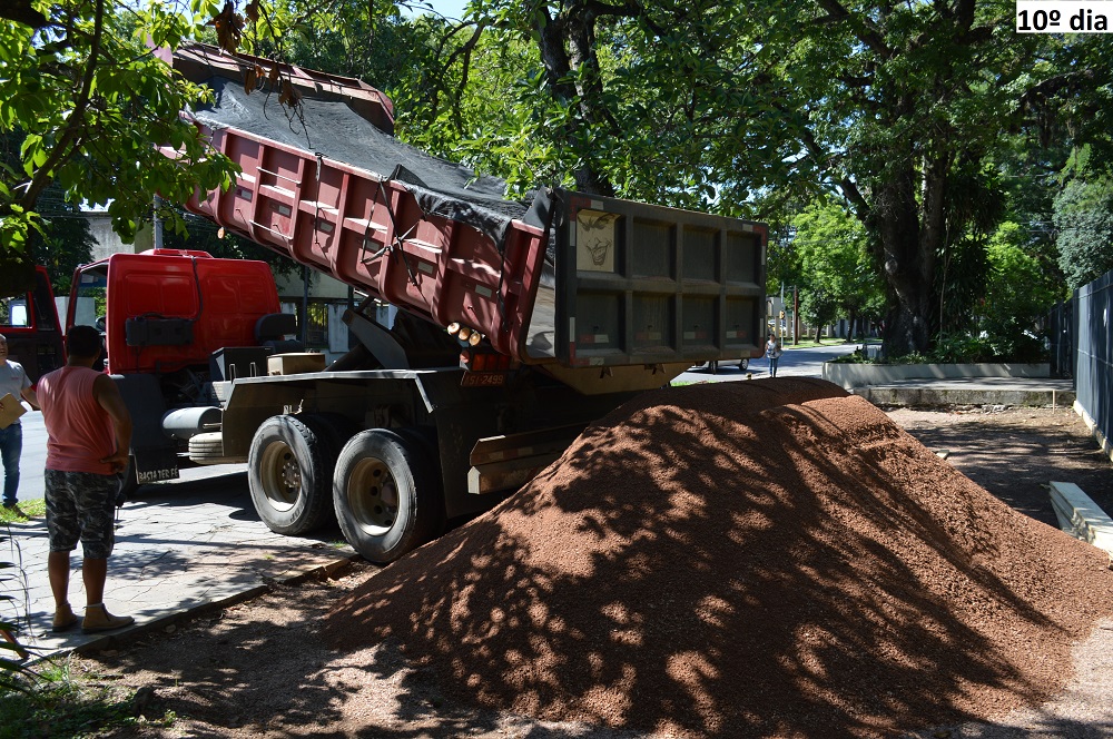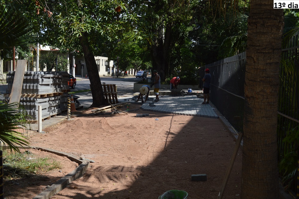 O serviço está sendo executado pela empresa N Construções, conforme Pregão Eletrônico nº 031/2018, com previsão de conclusão em 30 dias.