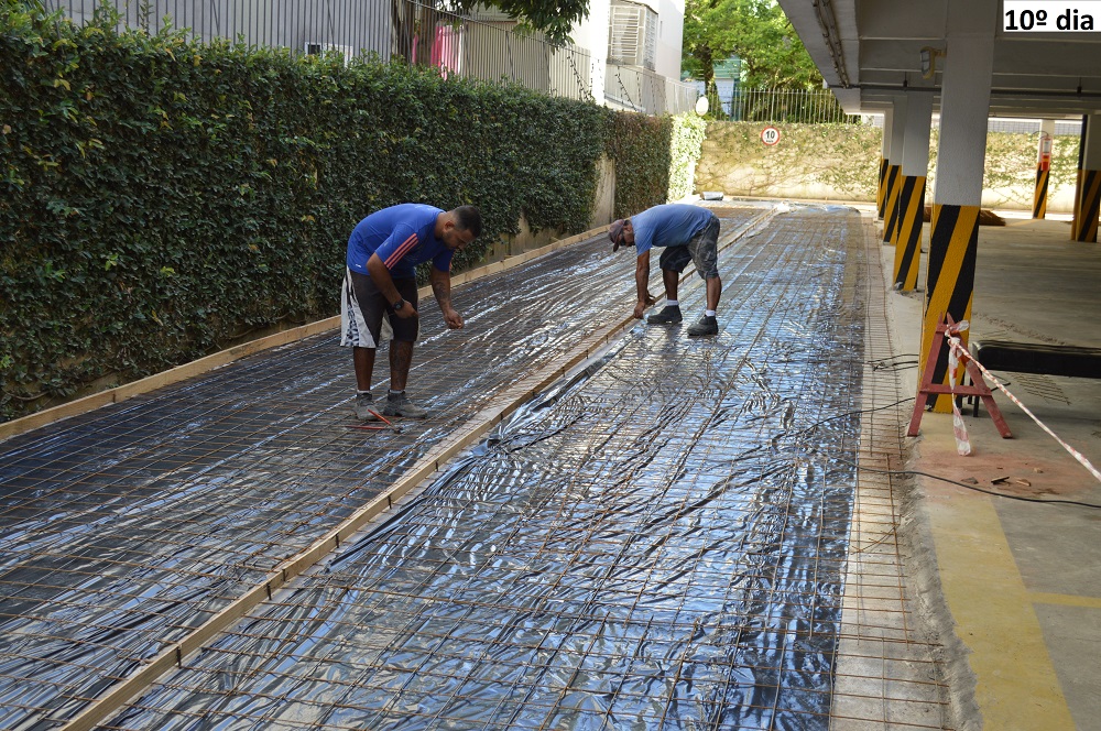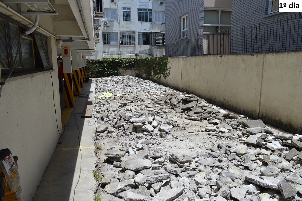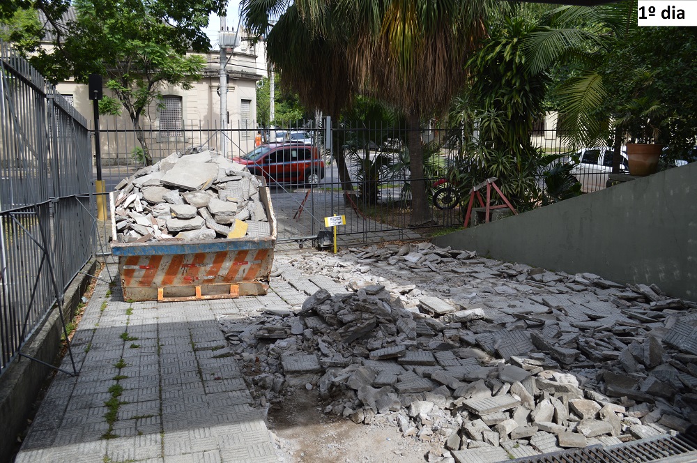 Na manhã dessa segunda-feira (14 de janeiro), a Justiça Militar do Estado do Rio Grande do Sul iniciou os trabalhos de substituição do piso de concreto do estacionamento do TJM, já desgastado ao longo de muitos anos. Igualmente, na sequência, pavimentará o estacionamento frontal ao prédio.