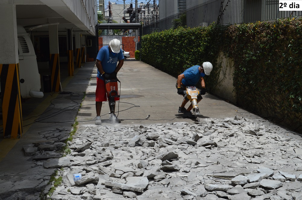JME inicia trabalhos de substituição do piso de concreto do pátio do estacionamento do TJM e pavimentação do estacionamento frontal