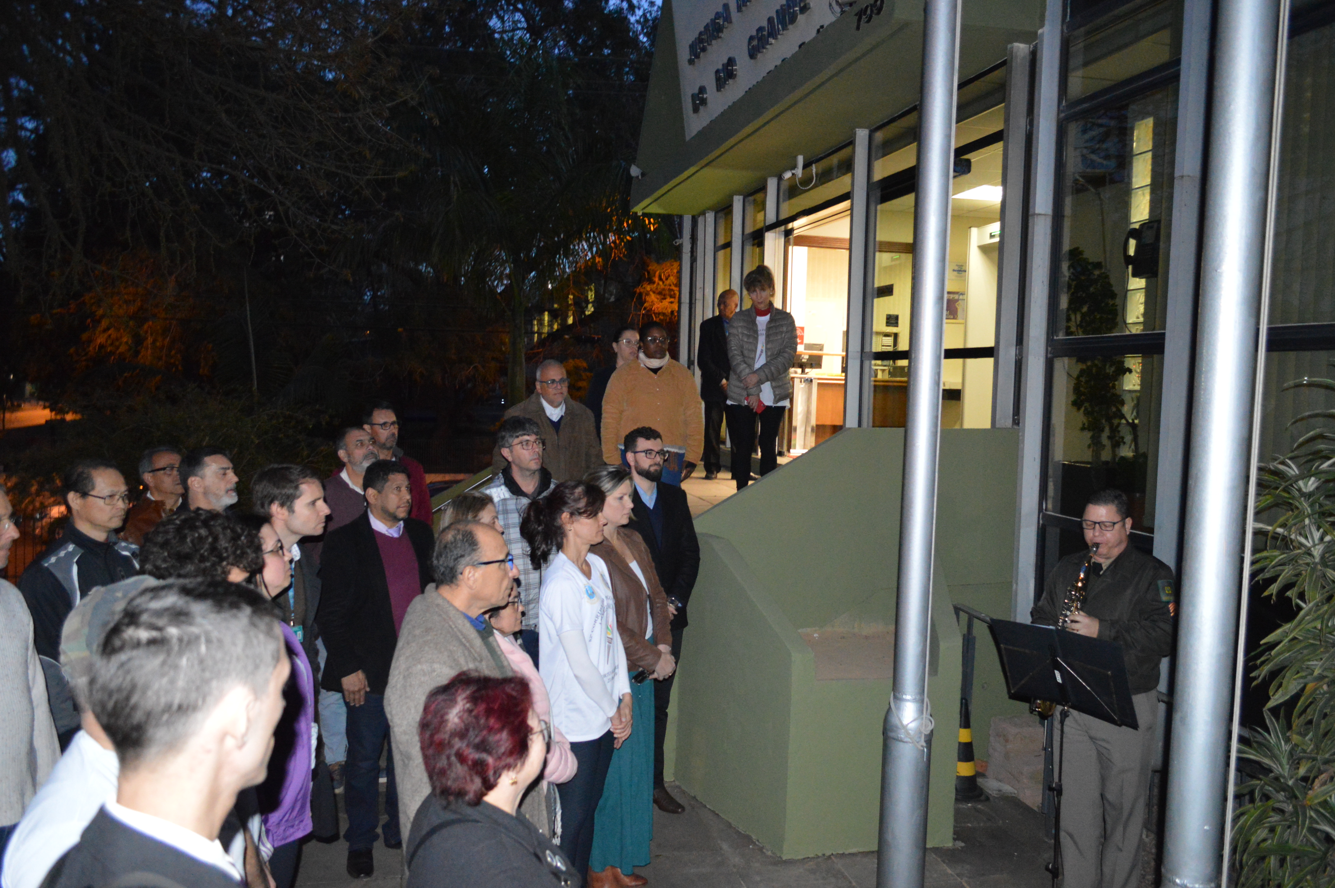 Ao encerramento da Sessão Solene, o Sgt. Carlos Roberto Teixeira Kettz executou o Hino Rio Grandense, sendo seguido pelo encerramento oficial do Ato Solene.