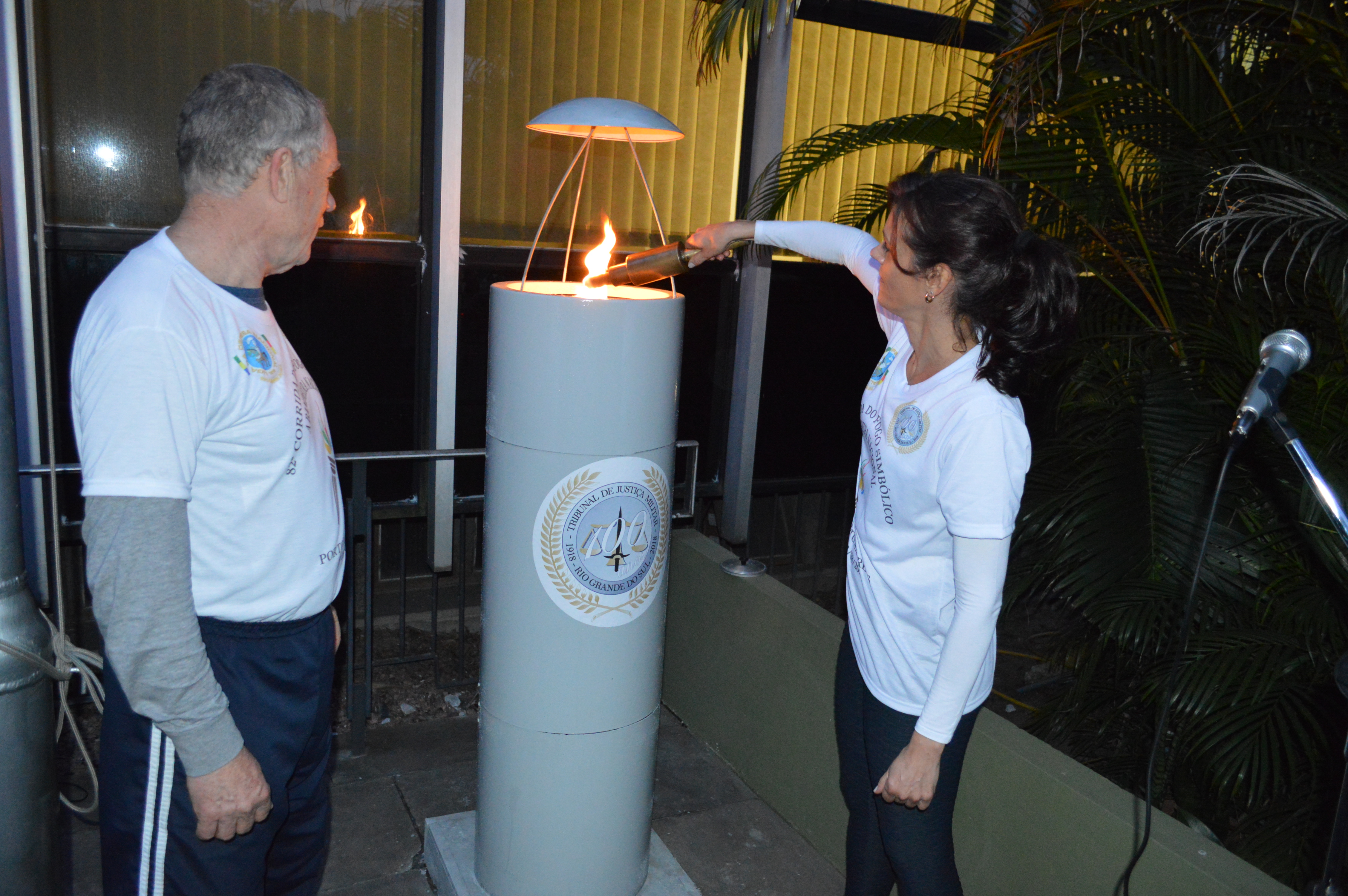 Prestigiaram o evento os servidores: Fernanda Martinez Cauduro, Edson Jairo Damaceno Pereira, Aline Sanches, Leoncio Alcir Machado da Silva, Willian Nogueira Pinto, Joseane Busato de Lima Veiga, Kelbel Silveira, Paulo Cezar Oliveira de Lima, Luiz Davi Ribas Figueira e Cassio Garcia Lacerda, além dos servidores da administraração que participaram do ato solene junto à pira instalada na parte frontal do prédio do TJM.