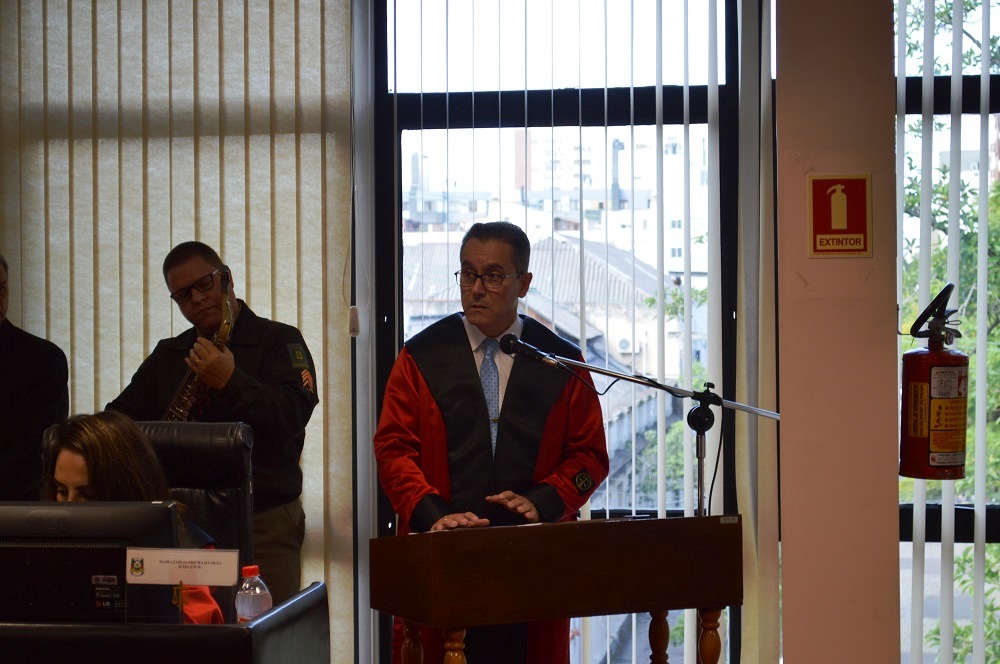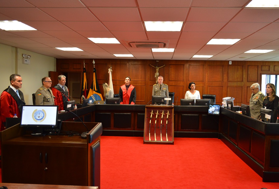 De início, o Mestre de Cerimônias, Felix Alexandre Grivot Neto, realizou as introduções necessárias, sendo seguido pela abertura oficial da sessão solene, proclamada pelo Presidente do Tribunal de Justiça Militar do Estado (TJMRS), Juiz Militar Paulo Roberto Mendes Rodrigues, oportunidade em que foi executado o Hino Nacional, em peça solo, pelo Sgt. Kettz.