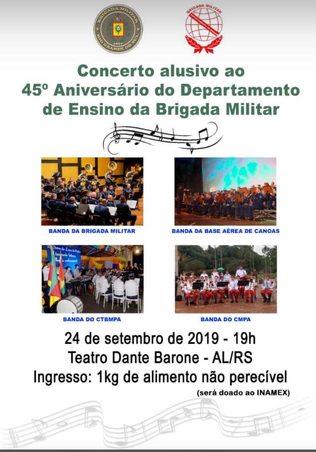 Na noite desta terça-feira, 24/09/2019, o Presidente TJM prestigiou o concerto de bandas militares ocorrido no Teatro Dante Barone - Assembleia Legislativa.