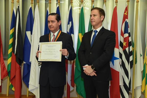 Na noite dessa quinta-feira (22 de agosto), a Justiça Militar do Estado do Rio Grande do Sul, representada pelo Presidente do TJM, prestigiou a entrega da Medalha do Mérito Farroupilha ao Desembargador Federal do TRF4, Carlos Eduardo Thompson Flores Lenz, realizada no Salão Júlio de Castilhos, Porto Alegre.