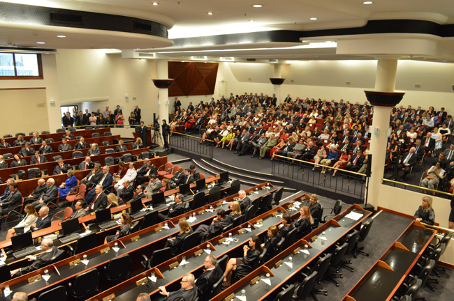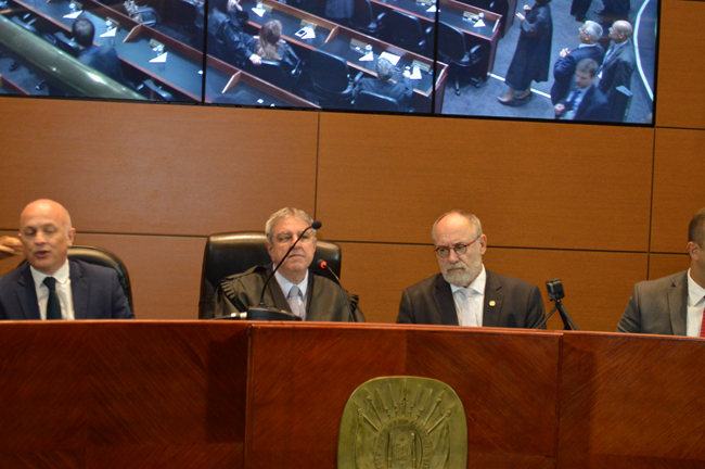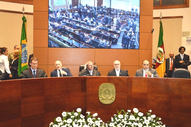 A solenidade foi aberta com discurso do presidente do TJ-RS durante o biênio de 2016-2018, desembargador Luiz Felipe Silveira Difini, que explicitou os feitos de sua gestão em relação à economia de recursos e à produtividade do TJ, ainda que o orçamento não fosse o ideal, segundo ele. “Diante dessa situação francamente adversa, não cedemos à desesperança, nem lamentamos decisões anteriores ao nosso período administrativo”, enfatizou o desembargador. Difini também comentou as dificuldades vividas pelo judiciário brasileiro em meio a uma crise “moral e política” no Brasil.