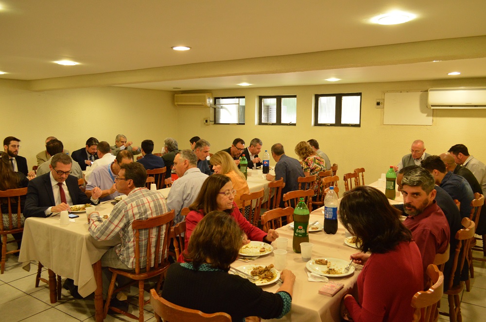 Também prestigiaram o evento o Maj. Médico Sedrez e os integrantes do Departamento de Infraestrutura do Tribunal de Justiça, Srs. Giovani Lino e Alan Gabriel Tedesco, os quais estão trabalhando para a regularização documental do prédio do TJM-RS, o PPCI e o projeto visando à construção do terceiro pavimento.
