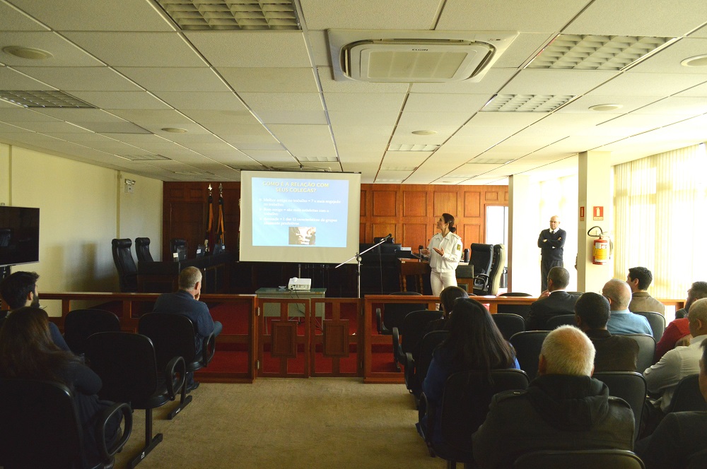 Após a realização das dinâmicas, a Maj. Denise, em sua explanação, fez apontamentos importantes sobre questões que ampliam a produtividade e melhoram o convívio no ambiente de trabalho.