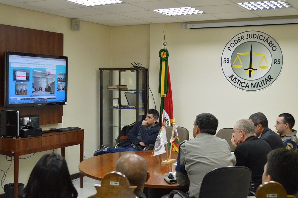 Na tarde dessa quinta-feira (17 de maio), a Justiça Militar do Estado do Rio Grande do Sul deu mais um importante passo na direção da virtualização total dos feitos judiciais ao promover reunião, em videoconferência, com os Tribunais de Justiça Militares de Minas Gerais e São Paulo, com a presença de representantes da Brigada Militar.
