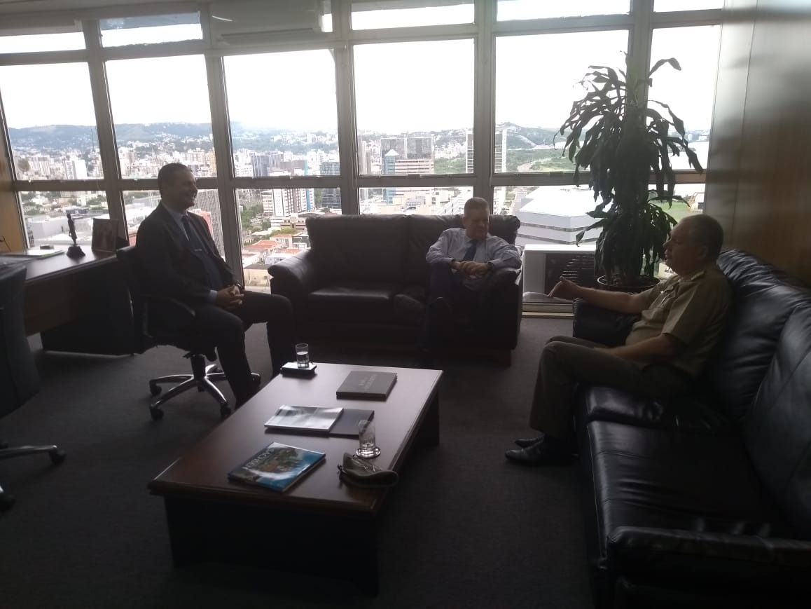 Na tarde dessa quinta-feira (10/01), o Presidente do Tribunal de Justiça Militar do Estado do Rio Grande do Sul, Juiz Militar Paulo Roberto Mendes Rodrigues, acompanhado do Assistente Militar, Tenente Coronel Robinson Vargas de Henrique, realizaram visita de cortezia ao secretário da Segurança Pública (SSP), Delegado de Polícia Civil Ranolfo Vieira Júnior, e ao secretário adjunto da Segurança Pública (SSP Adj), Coronel Marcelo Gomes Frota.
