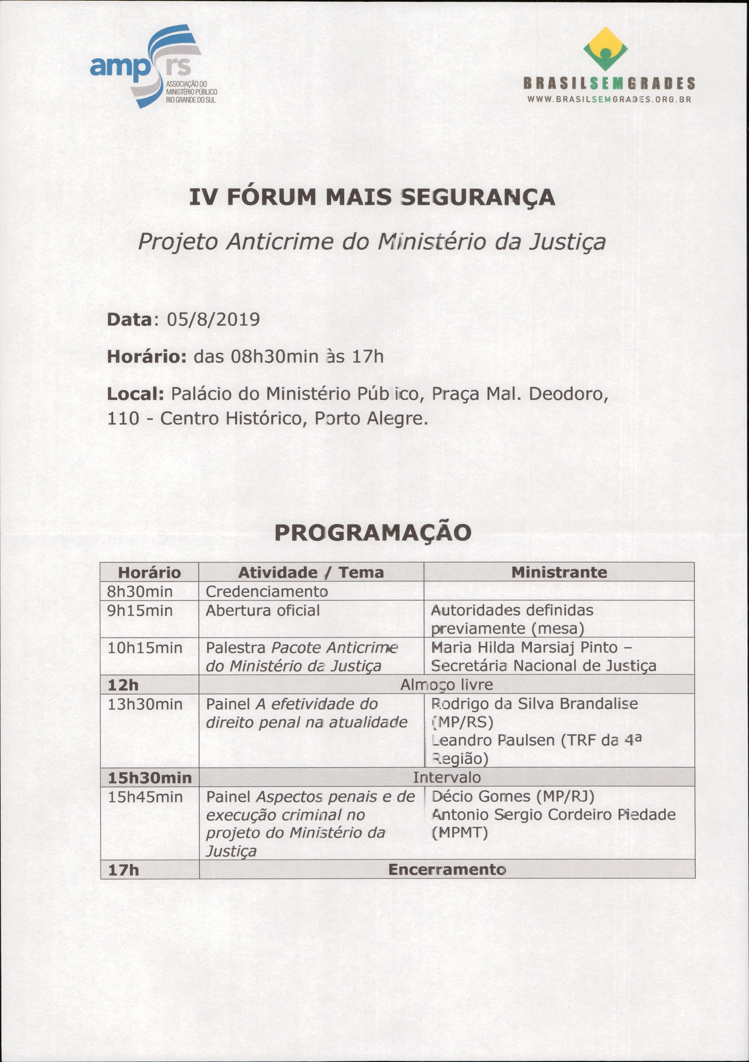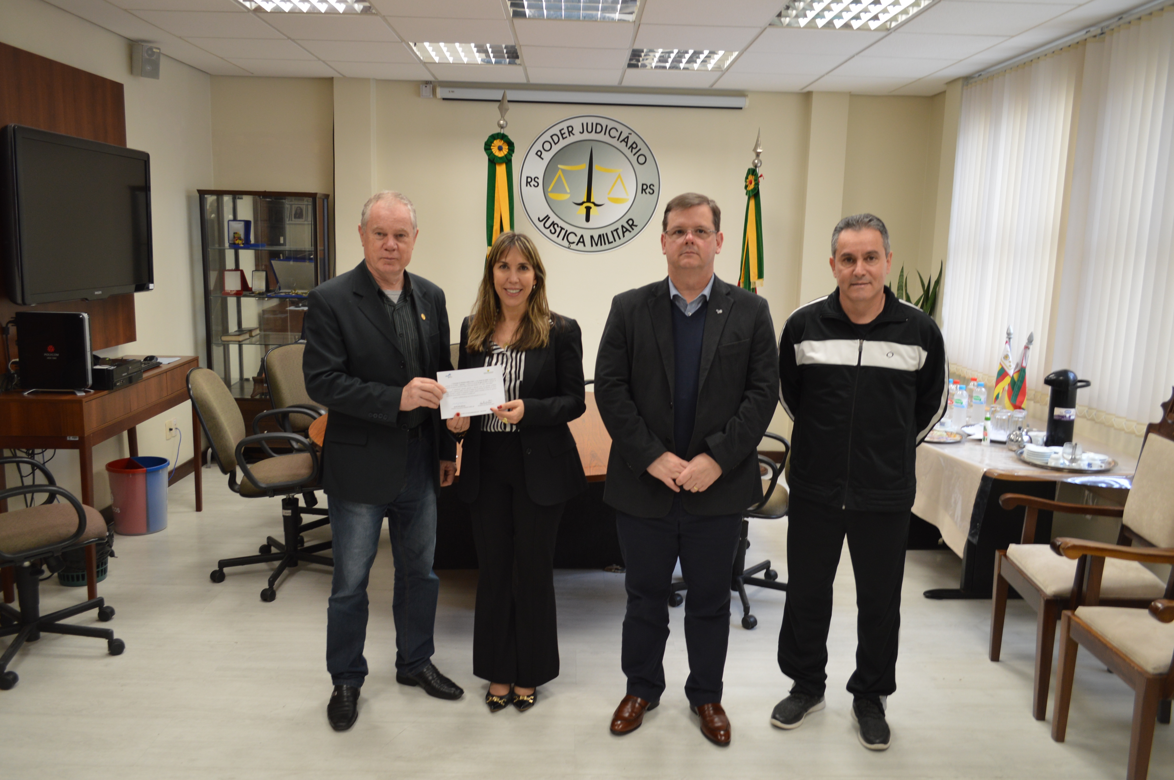 Na tarde dessa sexta-feira (19 de julho), a Justiça Militar do Estado do Rio Grande do Sul recebeu um convite da Presidente da Associação do Ministério Público, Dra. Martha Silva Beltrame, e do Vice-Presidente da AMP, Dr. João Ricardo Santos Tavares, para participar do 4º Fórum + Segurança, a ser realizado no dia 05 de agosto, no auditório do Palácio do Ministério Público.