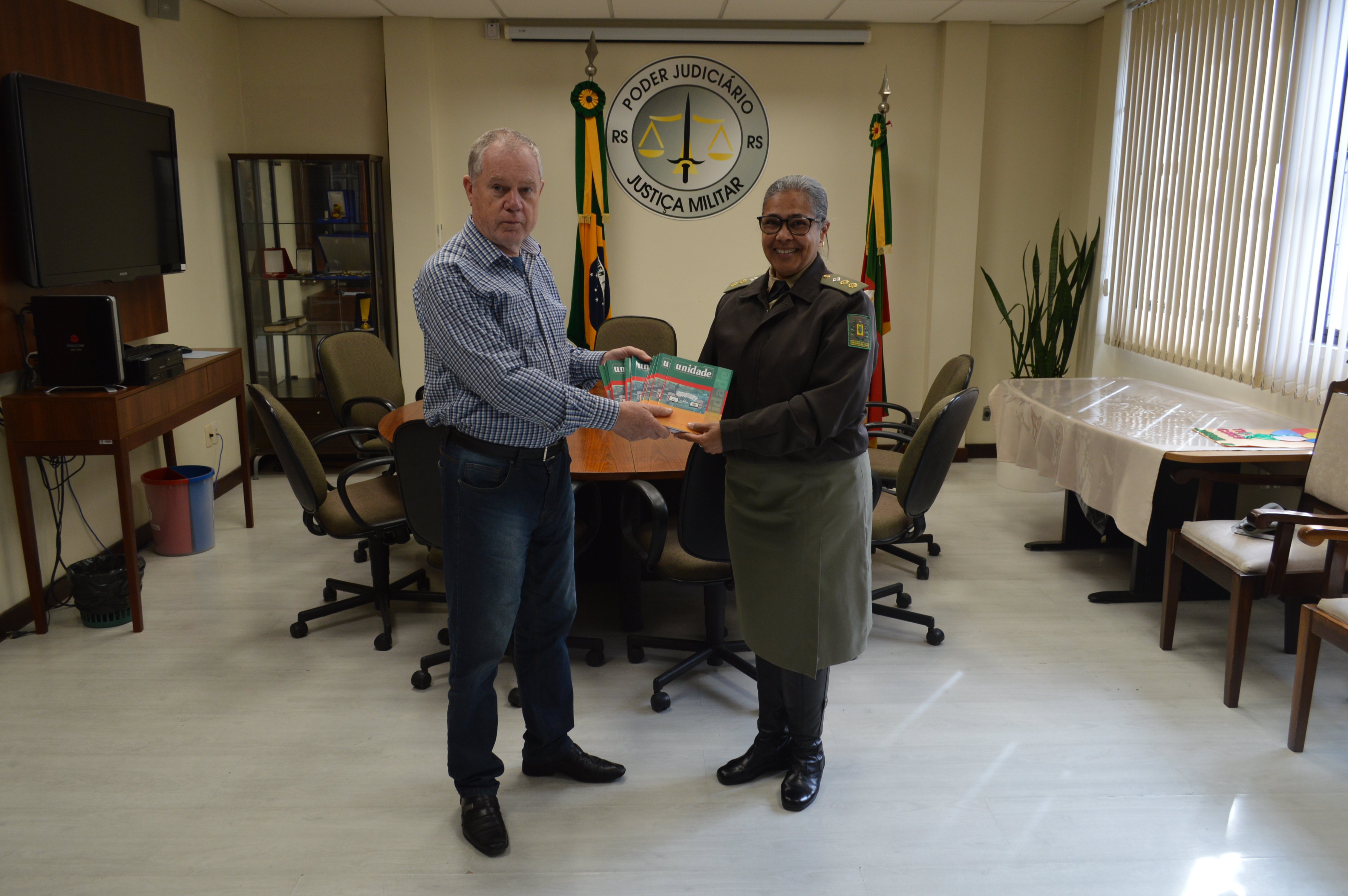 Na tarde dessa quinta-feira (22 de agosto), a Justiça Militar do Estado do Rio Grande do Sul recebeu das mãos da Ten. Cel. Najara Santos da Silva dez exemplares da revista UNIDADE, edição 79.