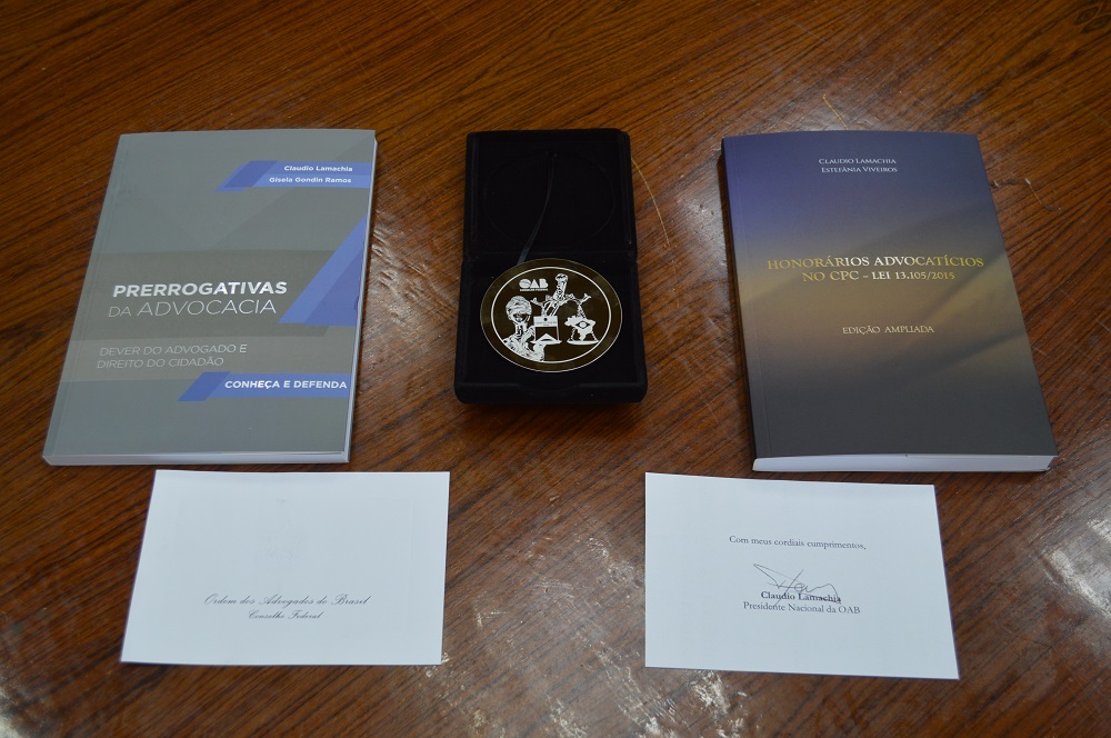 Na oportunidade também foram entregues dois livros, “Prerrogativas da advocacia” e “Honorários advocatícios no CPC - Lei 13.105/2015”, ambos de autoria do Presidente Nacional da OAB, Claudio Lamachia.