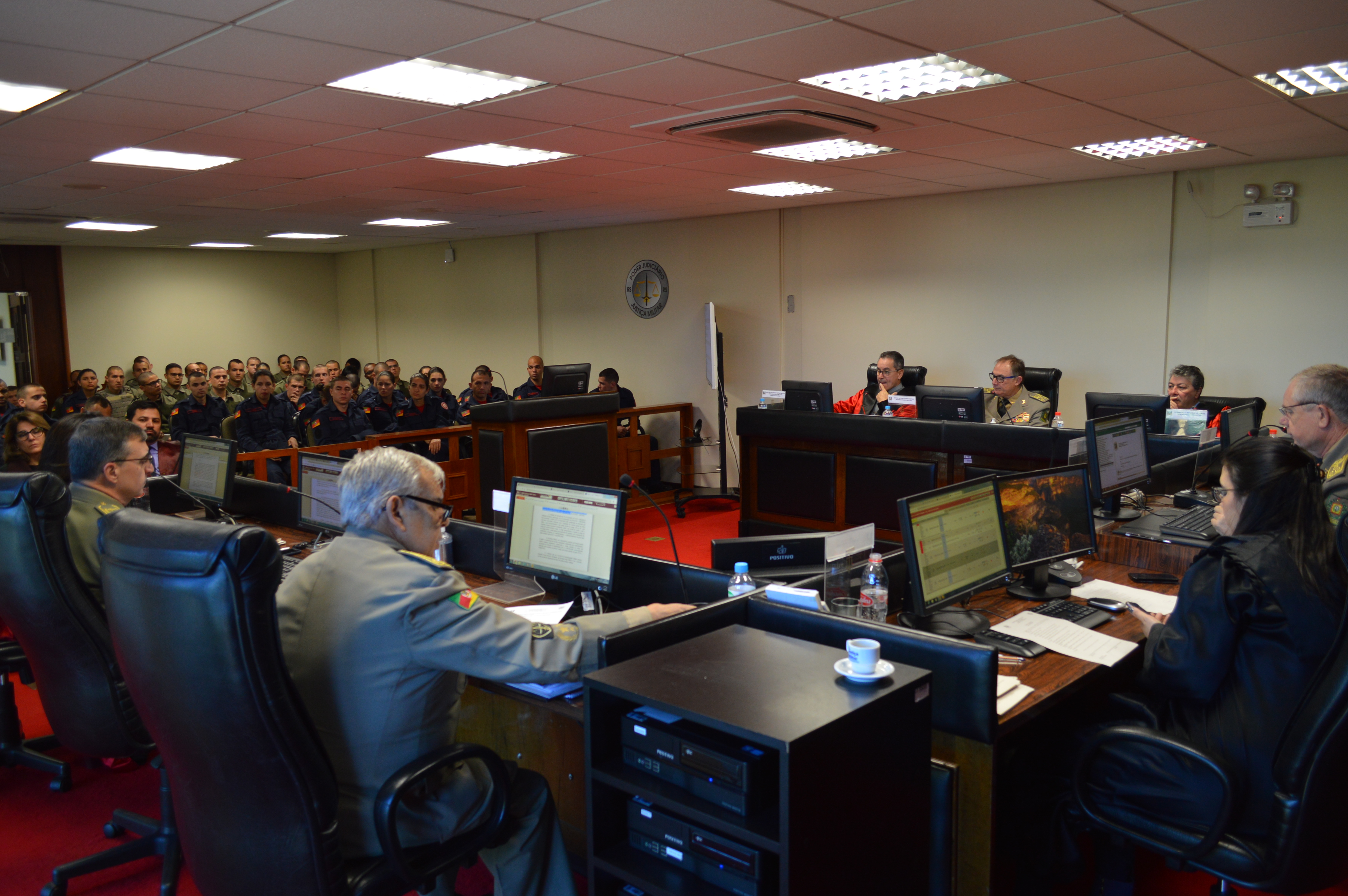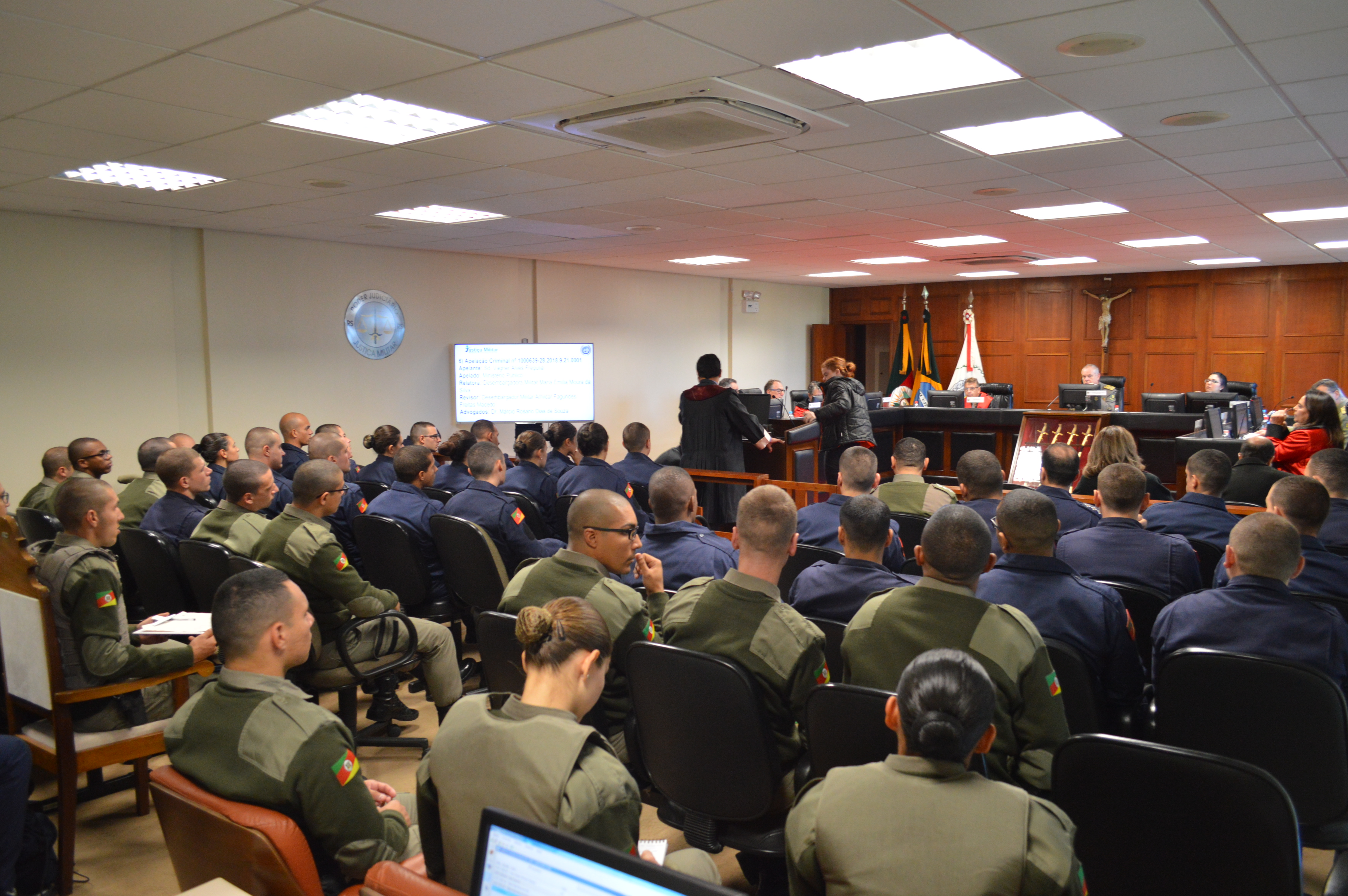 Na tarde dessa quarta-feira (03 de julho), 31 estudantes do Corpo de Bombeiros Militar do Rio Grande do Sul, acompanhados pelo instrutor Cap. Gustavo, e 29 alunos da EsFeS BM de Osório, acompanhados pelo instrutor Cap. Rogério, visitaram a sede do Tribunal de Justiça Militar gaúcho (TJM/RS), para conhecer um pouco sobre o funcionamento e a estrutura desta Justiça Especializada.