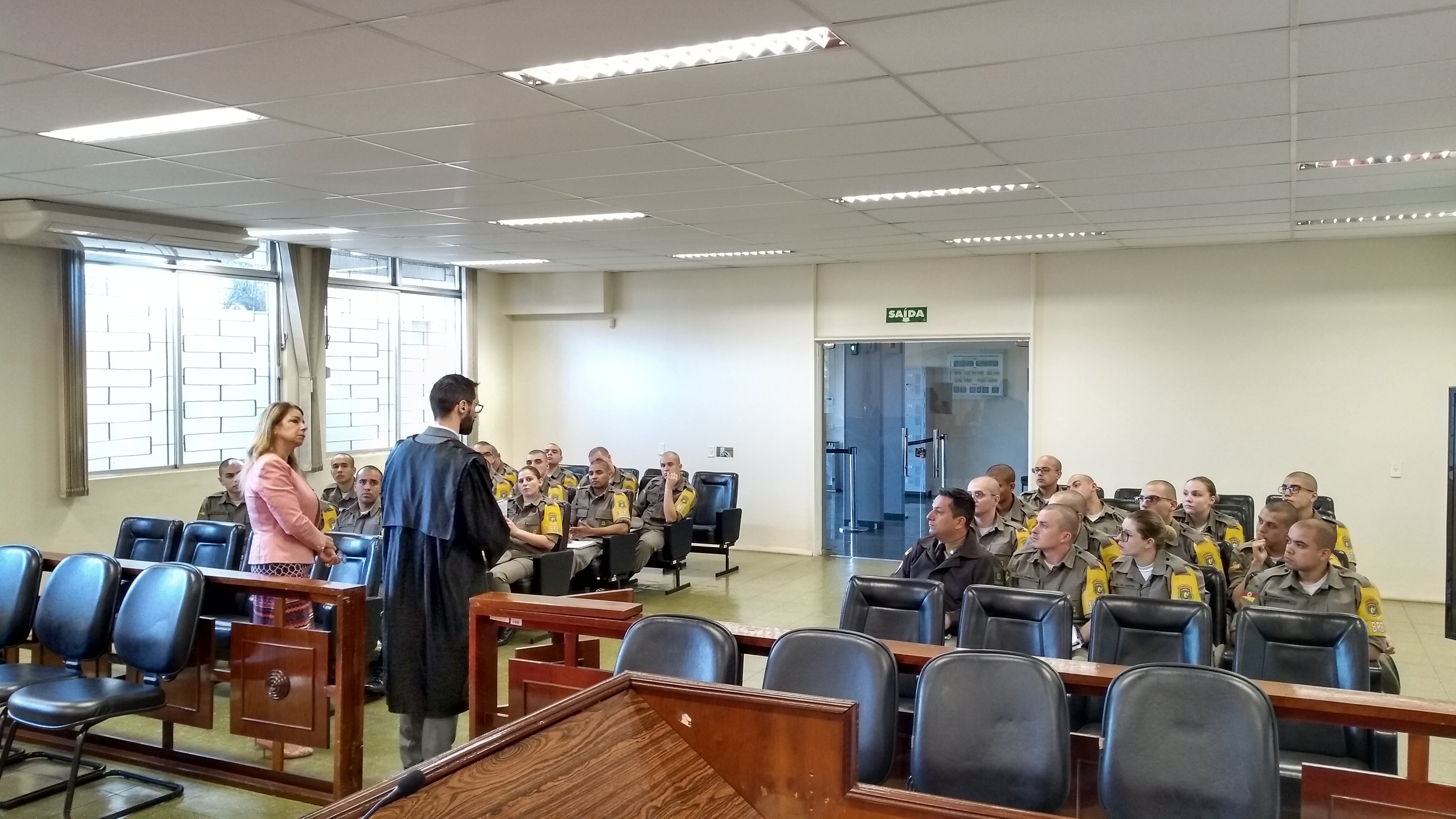 Na oportunidade os alunos-soldados acompanharam duas audiências e um cerimonial de julgamento, também receberam explanações da Juíza Titular da Auditoria, Dra. Mariluce Dias Bandeira, e do Promotor de Justiça atuante na Auditoria, Dr. Marcos Simões Petry.