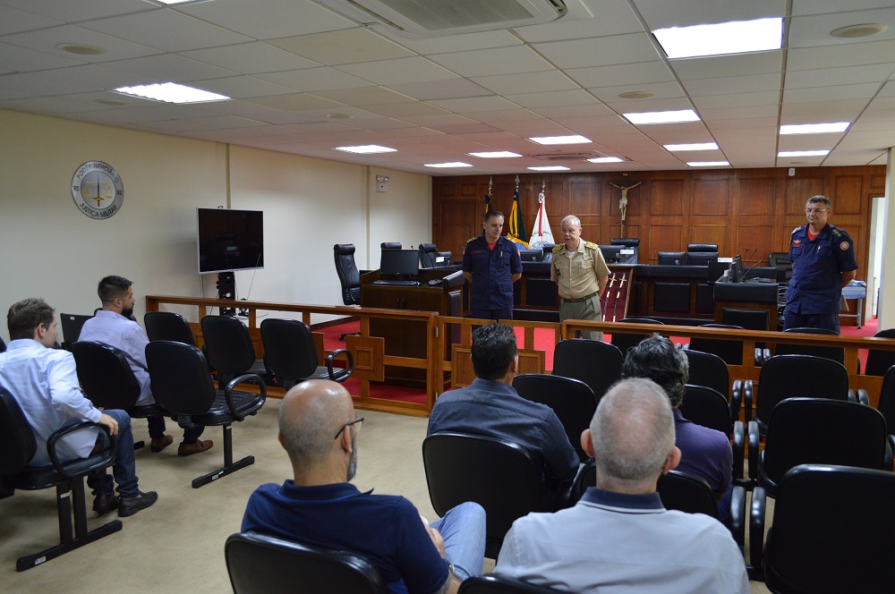 Na oportunidade, o Presidente da Corte conduziu os convidados ao Plenário da casa, oportunidade em que proferiu um breve discurso referente à importância do CBM à JME, e desejando um próspero comando ao novo Comandante-Geral.