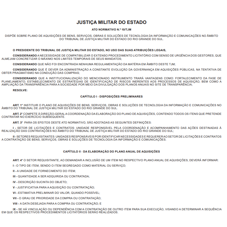 JME regulamenta aquisições de bens, serviços, obras e soluções de tecnologia da informação e comunicações no âmbito do TJM