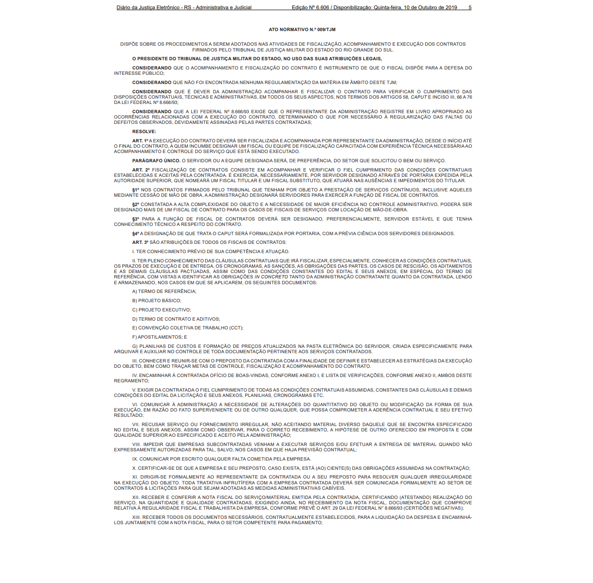 JME regulamenta procedimentos nas atividades de fiscalização, acompanhamento e execução dos contratos firmados pelo TJM
