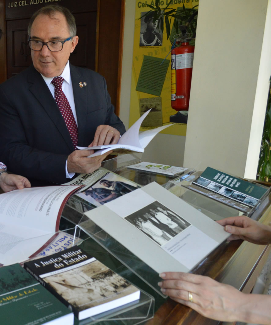 A partir de hoje, o Projeto Memória abre exposição para retratar a história 1º e 2º grau da justiça castrense. No acervo da mostra constam processos, atas, cartas, livros e fotografias. As imagens apresentam solenidades, audiências, eventos e palestras de diferentes décadas da história da JME. A amostra é itinerante e está sendo temporariamente exibida nas entradas dos plenários Cel. Aldo Ladeira Ribeira e Auditor César Alves, no Tribunal de Justiça Militar do Rio Grande do Sul, em Porto Alegre.