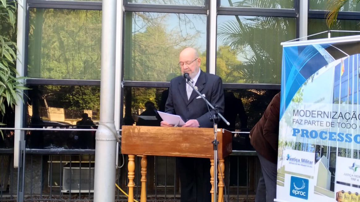 De início o mestre de cerimônias do Tribunal Militar gaúcho, Félix Alexandre Grivot Neto, realizou uma breve explanação referente à importância do evento, logo após, destacou as autoridades presentes, seguido pela execução do Hino Nacional pela Banda do Exército.