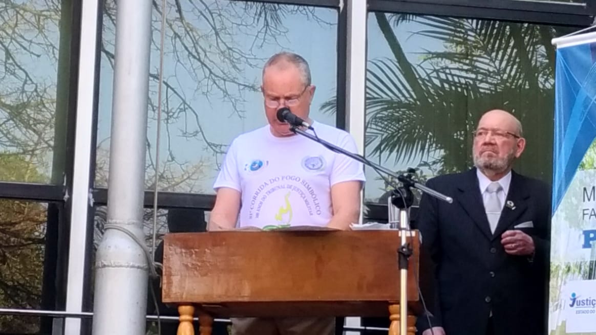 Em seguida o presidente do TJM/RS realizou um discurso, onde inicialmente agradeceu a homenagem prestada pela LDN/RS ao escolher o Centenário do TJM como tema da 81ª Corrida, bem como por escolher a sede da Corte Castrense gaúcha para as solenidades precedentes à partida da chama da pátria e, ainda, exaltou o valor do evento realizado, que incentiva a “cidadania e [o civismo, os quais] são conceitos fundamentais para uma sociedade democrática, isto é, uma sociedade que garante os direitos fundamentais dos cidadãos, como a liberdade e a igualdade, mas também necessita da participação ativa dos mesmos”.