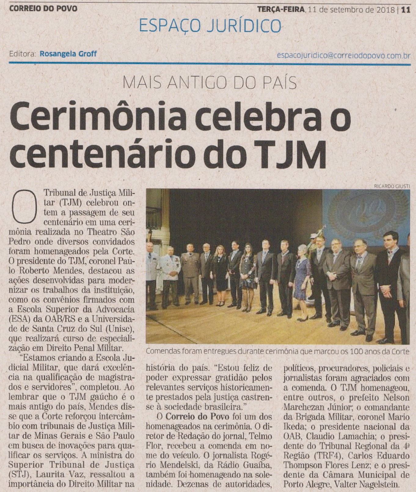 Jornal Correio do Povo - Cerimônia celebra o centenário do TJM