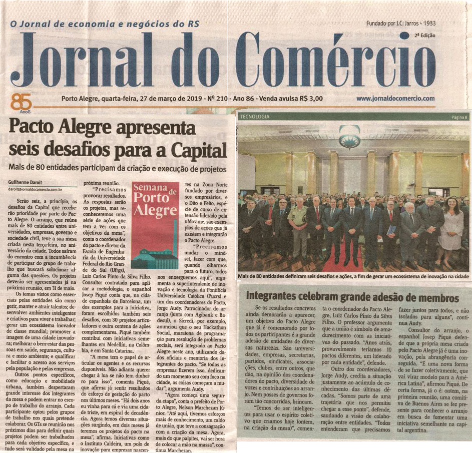 Jornal do Comércio: Pacto Alegre apresenta seis desafios para a Capital