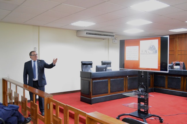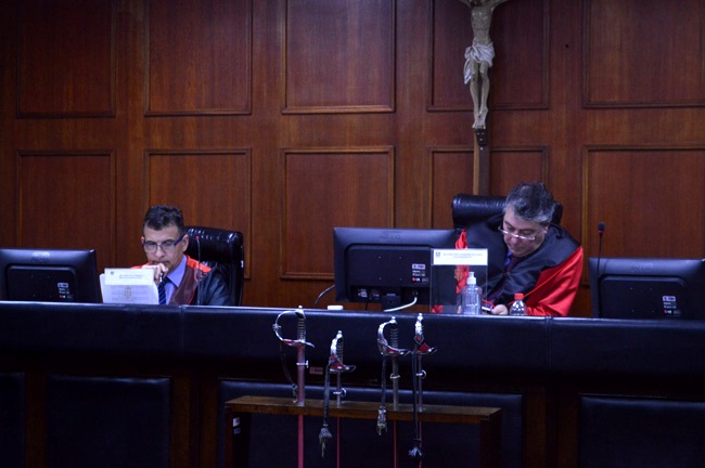 O Juiz-Presidente do TJM, Fernando Guerreiro de Lemos, saudou à turma e o interesse pela realização da atividade-aula manifestada pela Dra. Zanetti. Como de praxe, os demais juízes também salientaram a presença dos estudantes - uma das mais numerosas do ano.