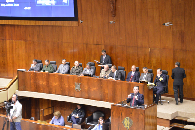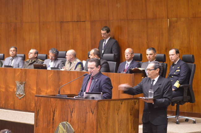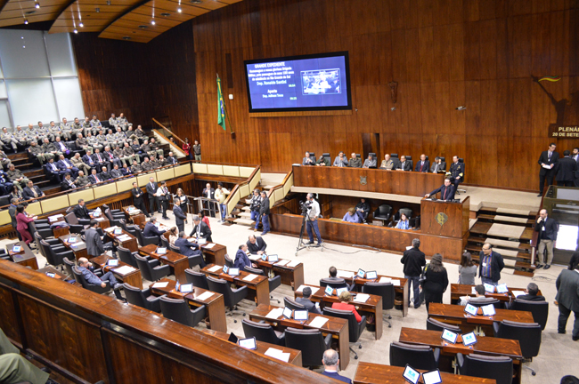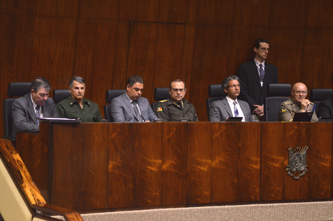 Nesta terça-feira (8 de agosto) em grande expediente da Assembleia Legislativa do Rio Grande do Sul, o Parlamento homenageou a Brigada Militar pelo transcurso dos seus 180 anos de atuação. A solenidade ocorreu por proposição do deputado Ronaldo Santini. O evento contou com as presenças dos magistrados da JME: juiz-presidente Fernando Guerreiro de Lemos; juiz vice-presidente do TJM Fabio Duarte Fernandes; juiz Corregedor-Geral da JME Amilcar Fagundes Freitas Macedo e o juiz do TJM, Paulo Roberto Mendes Rodrigues.