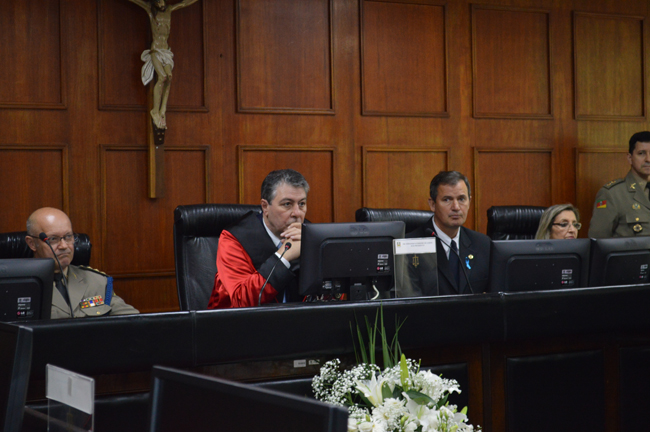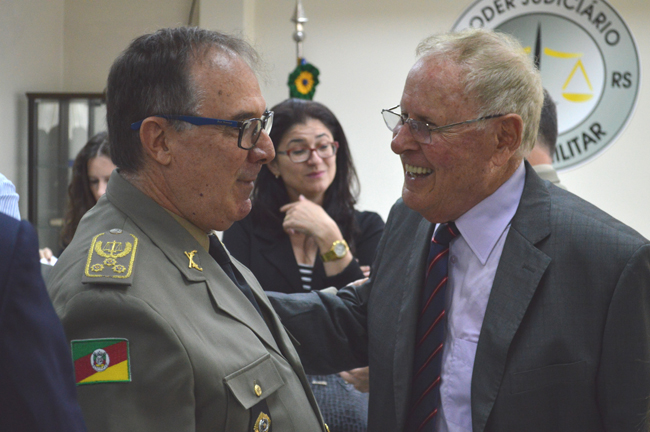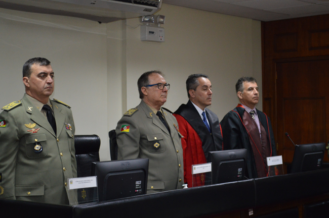 Em um plenário lotado de personalidades, autoridades e magistrados, estiveram presentes, pelo TJM/RS, o juiz militar vice-presidente coronel Fábio Duarte Fernandes; o juiz militar coronel Paulo Roberto Mendes Rodrigues; o juiz militar coronel, Antonio Carlos Maciel Rodrigues; o juiz militar coronel Sérgio Antonio Berni de Brum; o corregedor geral da JME, juiz Amilcar Fagundes Freitas Macedo; a juíza civil Maria Emília Moura da Silva e o procurador do TJM/RS, Fábio Costa Pereira.