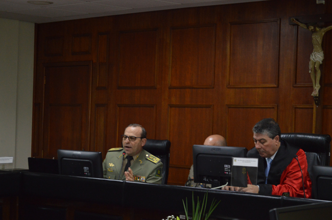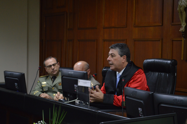 Abrindo a solenidade, Lemos saudou a todos os presentes e expôs, em seu discurso, a importância da Brigada como representante da autoridade do Estado. “A Brigada Militar é o Estado lá na ponta”, afirmou o juiz-presidente do TJM/RS. Lemos também explicitou a cooperação para a manutenção da hierarquia e do controle social da JME junto à BM, um dos fatores, segundo ele, que garante que a força policial seja considerada uma das melhores do país, juntamente com as polícias militares de São Paulo e Minas Gerais – estados onde também há tribunais militares especializados. “Elas (as polícias de SP, MG e RS) são o que são porque tem no controle uma justiça militar”, afirmou o magistrado gaúcho.