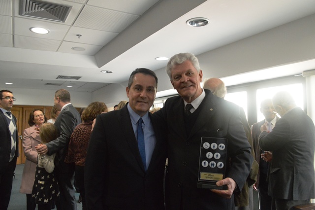 Nesta segunda-feira ( 27 de junho), o Juiz-Presidente em exercício do TJM/RS Antônio Carlos Maciel Rodrigues e o Juiz-Corregedor da JME/RS Amilcar Fagundes Freitas Macedo compareceram á solenidade de entrega da 2ª edição do Prêmio Miguel Velasquez de Direitos Humanos. O ato ocorreu no foyer da sede institucional do Ministério Público. O Prêmio contempla duas categorias: “Instituição ou Personalidade" e “Membro/Servidor do MP". Os homenageados foram escolhidos por uma comissão formada por membros e servidores do Ministério Público, conforme determinado no provimento que instituiu a premiação.