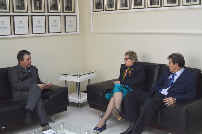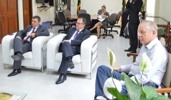 O presidente do Tribunal de Justiça Militar do RS (TJM/RS), juiz Fernando Guerreiro de Lemos, recebeu hoje os desembargadores recém-eleitos para a administração do Tribunal Regional do Trabalho da 4ª Região (TRT4). A nova presidente do TRT4, desembargadora Vania Cunha de Mattos; e o novo vice-presidente, desembargador Ricardo Carvalho Fraga, entregaram ao presidente do tribunal militar um convite para a solenidade de posse da administração 2017-2019. Também participaram do encontro o juiz militar vice presidente do TJM/RS, Fábio Duarte Fernandes; o juiz militar Sérgio Antonio Berni de Brum; e o juiz militar Paulo Roberto Mendes.